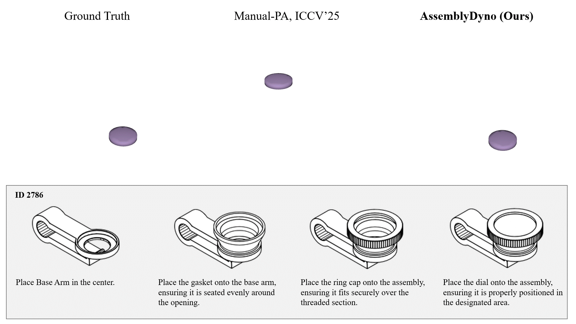Compared to the previous state-of-the-art method, AssemblyDyno generates motion trajectories that are far more realistic,closely matching the true assembly process and capturing subtle motions that previous approaches miss.