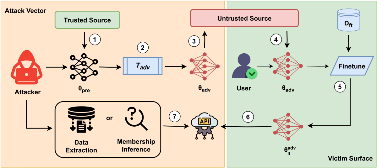 We uncover a novel threat vector that weaponizes machine-unlearning. A maliciously modified pretrained model can be crafted to leak private information during downstream fine-tuning-while still appearing to perform normally. By embedding unlearning triggers within the model, it becomes biased to expose sensitive details (such as membership or verbatim text) once fine-tuned on private data. Our experiments demonstrate that these poisoned models can pass standard utility tests, making them stealthy and particularly dangerous. These findings underscore the urgent need for rigorous verification of pretrained model integrity before deploying them on sensitive datasets.